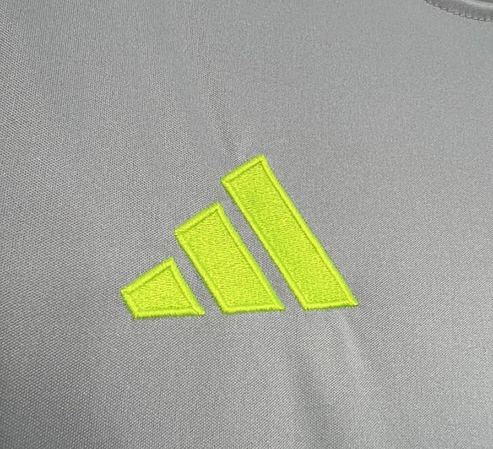 Une coupe légère et technique, idéale pour l'entraînement ou les échauffements. L'emblème brodé en jaune fluo s'accorde aux détails Adidas, apportant une touche de fraîcheur au design.