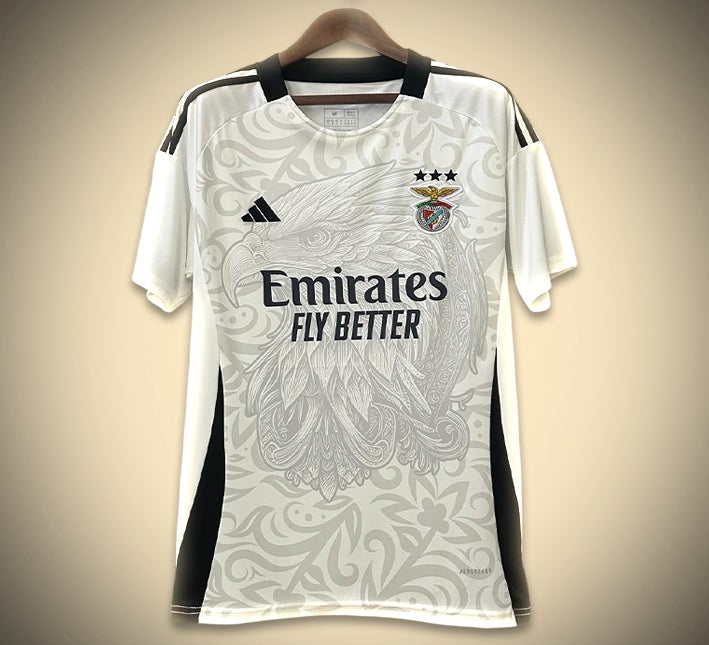 🤍🦅 Un hommage subtil à l’identité visuelle du club lisboète. Le Maillot d’Entraînement Benfica 2024/2025 mise sur une teinte blanche élégante rehaussée par une immense illustration stylisée d’aigle sur le torse. L'effet tatouage ton sur ton donne une touche artistique à ce vêtement unique.