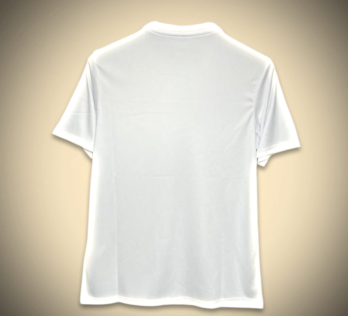 Tissu en polyester, impression par sublimation, coupe standard unisexe, manches courtes, col rond. Les flancs sont ornés de griffures noires verticales, accentuant l’allure sportive.