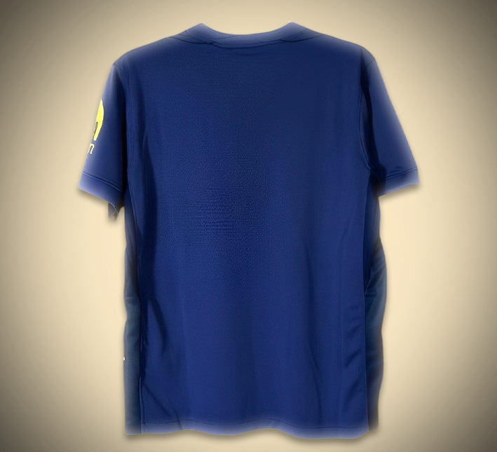 🔵⚡ Le maillot Atlético Madrid extérieur 25/26 se distingue par son audace visuelle et son design électrique. Entièrement revêtu d’un bleu profond, il est dynamisé par des détails jaune fluo sur le logo du club, le swoosh Nike, le sponsor Riyadh Air et des motifs en forme d'éclairs sur les flancs. Un rendu visuel puissant, parfait pour les supporters qui aiment les designs percutants.