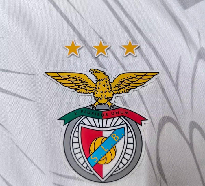 🦅 Un hommage majestueux à l’aigle symbole du club. Le Maillot Concept Benfica 25/26 arbore une silhouette d’aigle subtilement imprimée sur un fond blanc éclatant, soulignant l'identité du Sport Lisboa e Benfica avec puissance et élégance.