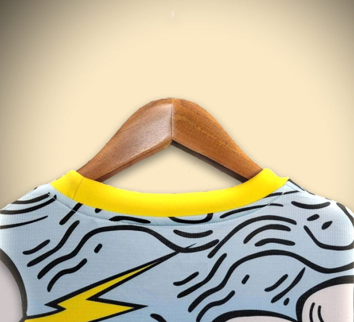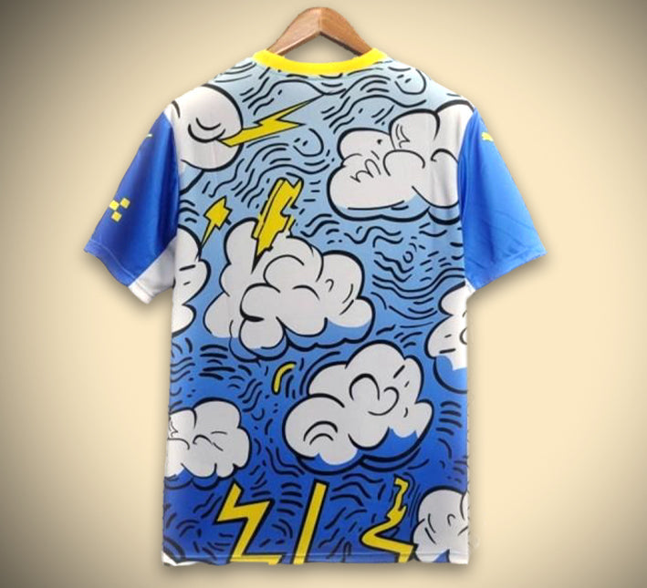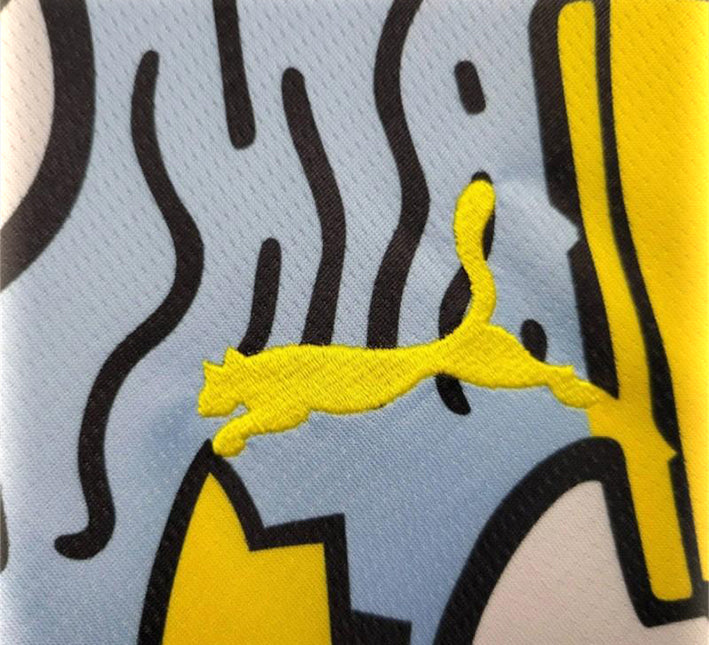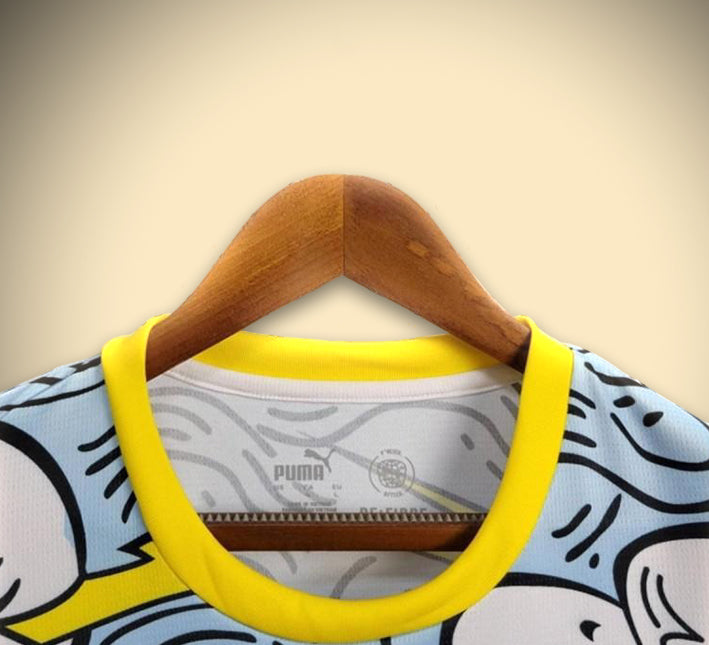 Le maillot de foot Manchester City ici présenté n’est pas un modèle que l’on voit sur le terrain, mais bien une création alternative, pensée pour ceux qui aiment se démarquer. Le design se joue des attentes : mélange de tradition et d’expérimentation graphique, il attire le regard tout en évoquant l’esprit du club. Ce type de maillot concept est souvent prisé des collectionneurs, des amateurs de mode sportive ou de ceux qui veulent afficher leur attachement à Manchester City d’une manière différente.