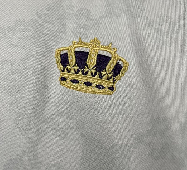Le blanc est subtilement habillé d’un motif en ton sur ton inspiré des symboles classiques portugais. L’écusson en forme de couronne brodé en or, accompagné d’un branding discret mais visible, complète l’ensemble avec classe. Une pièce idéale pour les fans de maillot Portugal stylisé ou réplique exclusive.